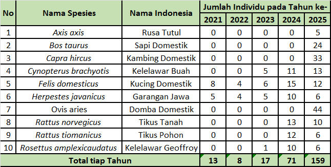 Daftar Jenis Mamalia di Kawasan Konservasi