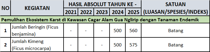 Tabel Absolut Program Pemulihan Ekosistem Karst di Kawasan Cagar Alam Gua Nglirip